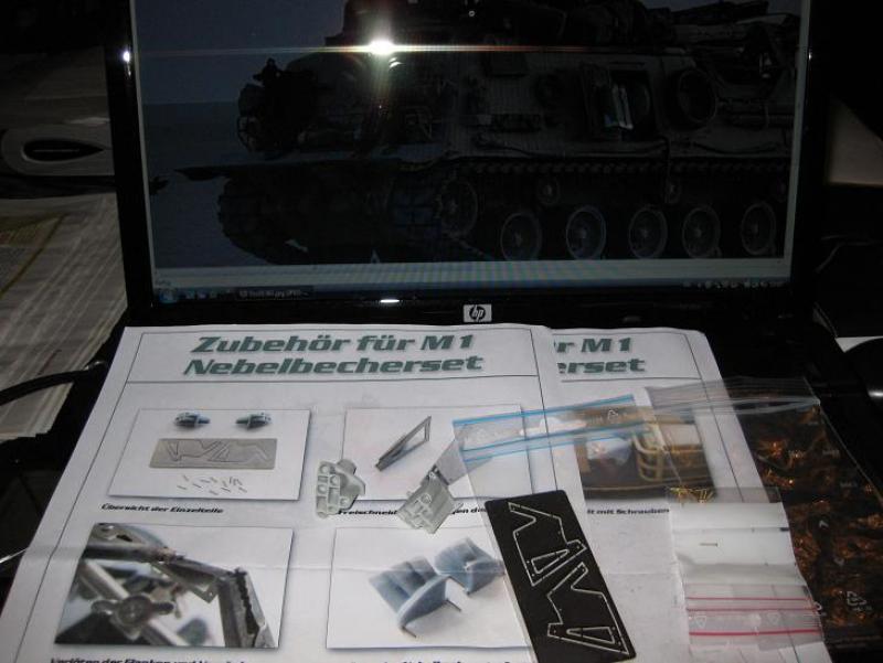AFV hat ja ein paar schöne neue Sachen im Programm, die man nicht so ohne weiteres aus dem Nichts schnitzen kann (ok, Tacki vielliecht mit den türkischen Krummsäbeln ) unter anderem die Nebelwerferbatterie des "M1 Abrams". Da diese komischen Fächerwerfer am M88 auch (teilweise) dran sind hab ich mir die zugelegt. Tolle Arbeit von AFV! Zwar konnte ich die Halterungen nicht komplett übernehmen (sind am M1 seitlich am Turm, am M88 vorn "nach vorn"). Aber die Rahmen hinten hab ich zur Versteifung der Resinteile angesetzt und alternativ Messingröhrchen als Halterung verbaut. Guckt ihr.... momentan mach ich Stellproben mit Auspuffrohren hochgelegt wie bei einem "Kenworth" Truck. Darauf brachte mich der Baubericht des M88 in 1:10 hier im Forum......