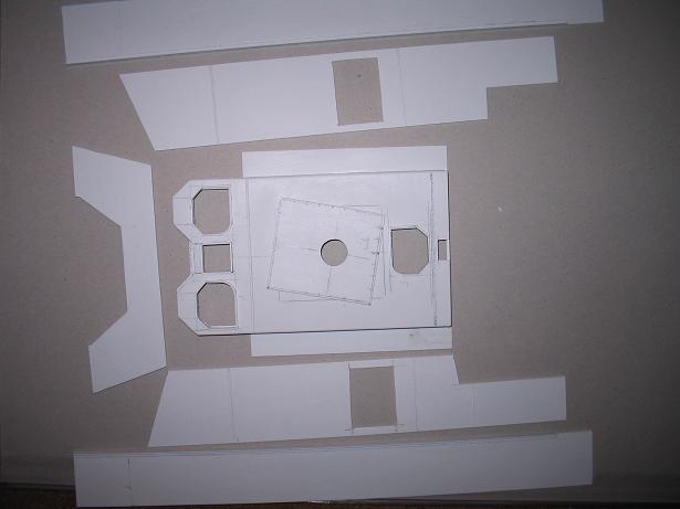 Material ist da. So hab ich mich heut an das Räumschild gemacht (kein Spaß wegen der großen Radien, aber Blumentöpfe und Spielzeugeimer helfen da als Schablonen). Das abnehmen der Maße vom 1:35er erleichtert natürlich viel. Beim "Büffel" mußte ich nach Ansichten und Fotos bauen. Das geht zwar aussen, aber gerade an Teilen wie dem Räumschild kann man da wenig abnehmen. Mit dem Kasemattenaufbau hab ich auch begonnen. Ich bau "vom großen zum kleinen", so passt alles. Die Frage ist immer nur, wann die Einzelteile zusammenkleben. Übersichtlicher ist es verklebt, wenn danach aber noch Löcher zu bohren sind oder ähnliches ist das nicht so günstig.