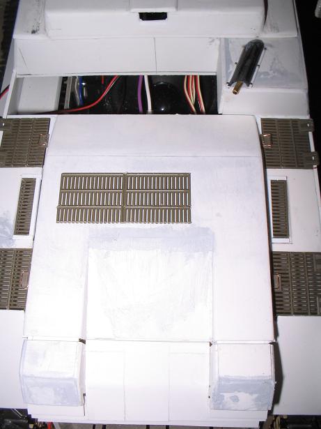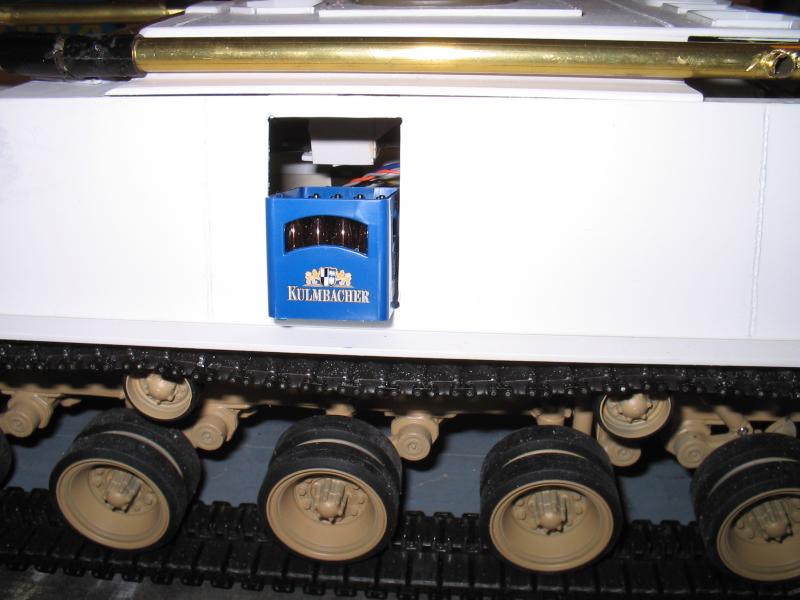 ich hab den Fehlkauf meines Leo1- den Lautsprecher- hier erstmal untergebracht. Fehlkauf beim Leo1 weil zu groß. Aber im M88 ist großzügig Platz. Da ich die DMD vom "Pershing" verwende, hätte ich den "Pershing" Sound. Probiert hab ichs noch nicht. Und den "Sound" eines M88 Original kenn ich nich. Schaun mer mal...übrigens lackier ich ihn ja in Sandfarbe...siehe Fahrwerk. Das hat einen riesenvorteil- Details werden nicht "zugetarnt".