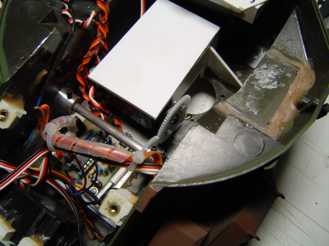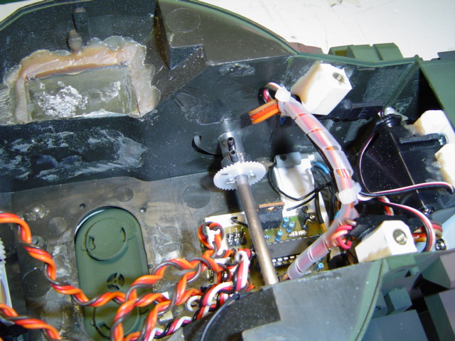 Als nächstes wurde die Halterung des Servo gebaut, zu erkennen ist das Zahnrad am servo welches jetzt in die BK welle greift