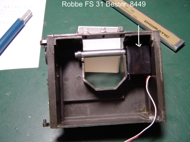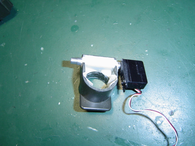 Der Servo passt genau in das Heckteil, zur Lagerung des Heckradars wurde eine Aluwelle gedreht welche am servo eine 3mm Bohrung hat, dadurch lässt sie sich stramm auf das servo Ritzel aufstecken.