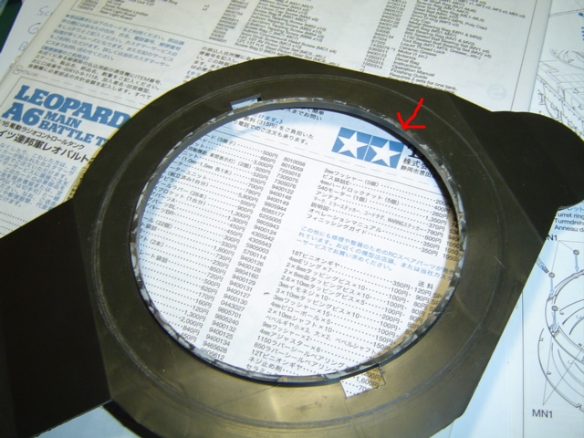 Als erstes der Einbau am Turm, dazu muss am Turm der Wulst der Führung um die Hälfte abgeschliffen werden, siehe Bild