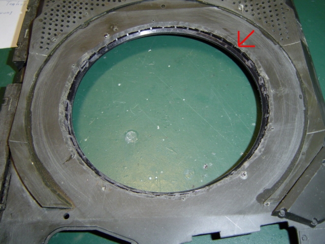 In diese Vertiefung setzte ich unter Vorspannung einen O-Ring ein, anschließend wurde das ganze auf den Sockel des Radars geklebt.