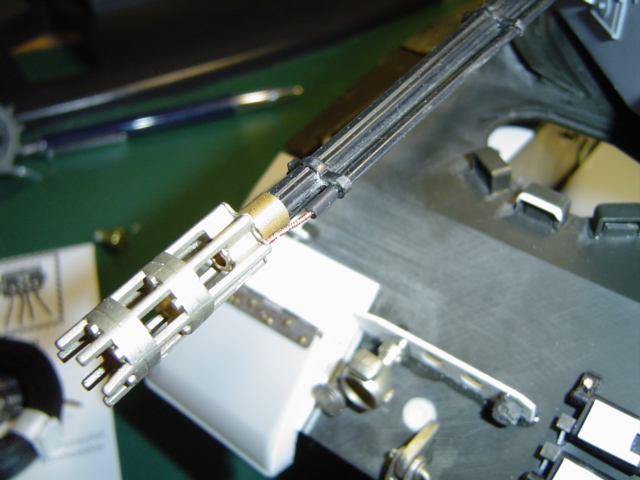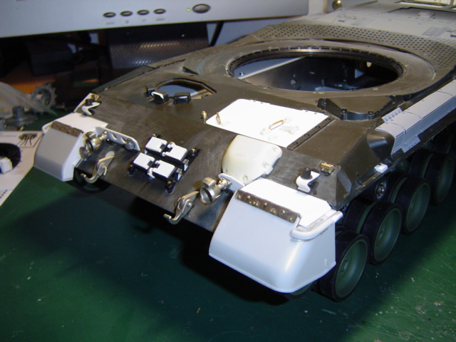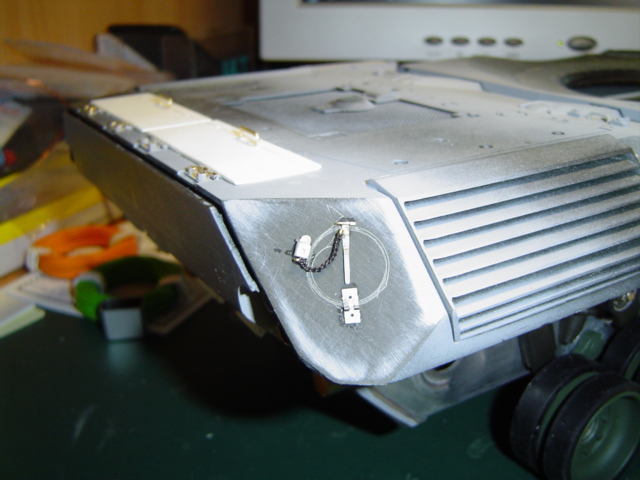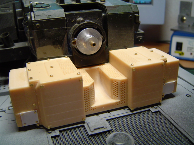 Am Turm Fertigte ich neue Nebelwerfer aus Resin an, und die Aufnahmeplatte wurde dem Original nachgebaut.