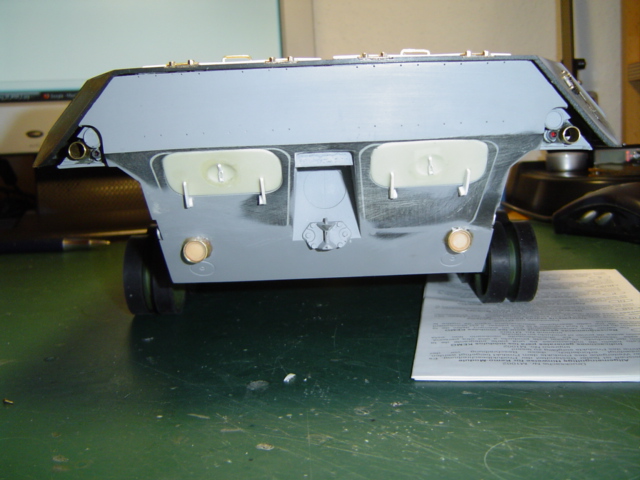 Das Heck hatte bis jetzt auch jede menge Arbeit verursacht, im ganzen die Bilder vom Heckeck und den beiden Klappen (welche nicht versenkt sind) die die Ladebuchsen und Schalter für die RC-Anlage beinhalten.