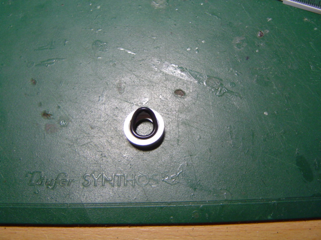 In diese Vertiefung setzte ich unter Vorspannung einen O-Ring ein, anschließend wurde das ganze auf den Sockel des Radars geklebt.