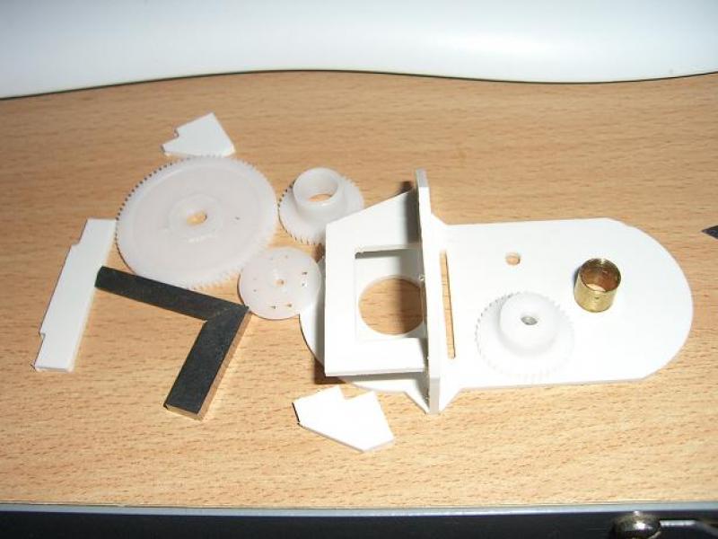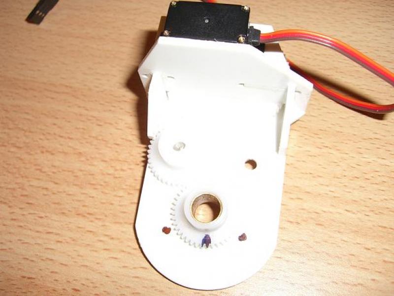 Jetzt zusammengebaut aber habe da ein Problem.Es ist kein Längerer Servoweg (270 ).Habe schon alles versucht .Hier mal ein Bild .Der schwarze Punkt auf den Zahnrad geht soweit nach links und recht wie die anderen schwarzenpunkte ,die ich auf die Platte gemacht habe.Jetzt brauche ich mal einen Rat.So würde der Radar nie einfahren ,sondern immer drausen bleiben -- gruß