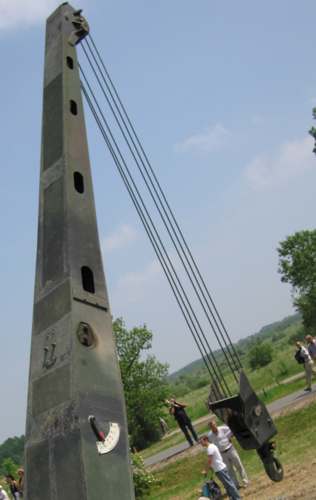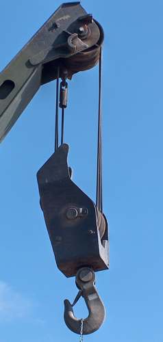 D.h. das Verhalten der Kranflasche beim Modell muß genau beobachtet werden, um nachher die entsprechenden Umlenkungen zu bauen. Schwierig da die Kranflasche nicht genau symetrisch zum Arm hochfährt. Liegt daran das das Seil nicht genau gerade hängt, sondern dem Rollenversatz nacheilen will.