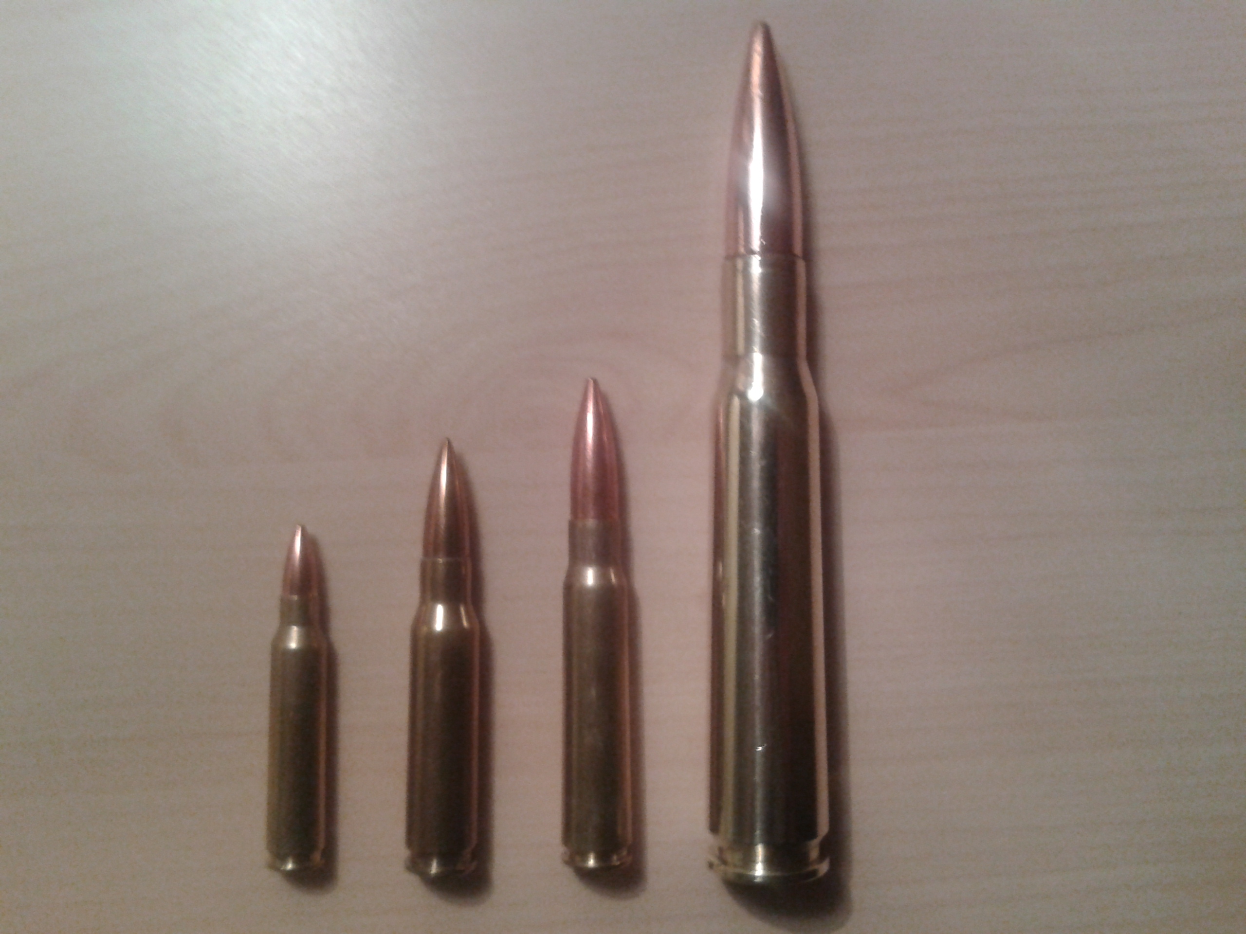 Hier mal ein größenvergleich.......223rem....308win.......8x57js......50BMG !