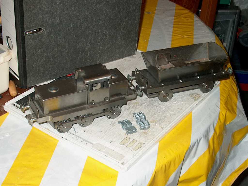 Vielleicht wissen es ja die einen oder anderen das ich(17) seit letzten Jahr eine eine Ausbildung als Industriemechaniker bei Rheinmetall Landsysteme (ehemaliges Henschel Wehrtechnik) mache/angefangen habe die Lehrwerkstatt ist aber nicht von RLS sondern von Thyssen Krupp Expersite und dan macht der ganze Industriepark( Thyssen Henschel Mischertechnik/ Antriebstechnik /Transrapid/Henschel Recycel Technik/ Thyssen Krupp Expersite usw.......ausbildung. Hier möchte ich mal zeigen was ich so in meinem ersten Lehrgang von 4Monaten so gebaut habe. Die Lok und Anhänger haben nur so 3 Monate gedauert... den anderen Monat gabs Meißelübung oder Nietübung usw.... jetzt habe ich 4 wochen Schweißlehrgang