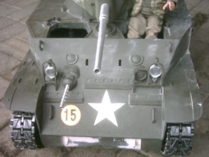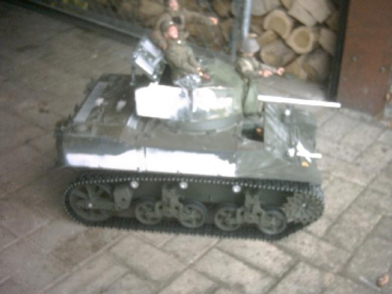 hallo weil mir ein modellbau kollege geld schuldete bin ich zu einem amipanzer gekommen in 1:6 -der leiderkaputt ankam so habe ich mir für 90 euro einen in amiland geschossen,(steht bei ebay drin) weil ich ihn schon mal hatte habe ich gedacht ist mal was anderes --so gut wie alle lieferbaren anbauteile bei axel geordert(ein paar waren schon verbaut(periskope waren falsch rum reingebaut!!)..so meine vorstellung war proportional steuern und rohrheben senken eventuel rückzug..Habe erst mal angefangen störende teile zu entfernen wollte einen frühen stuart bauen,(anregeungen bei http://www.armorpax.com geholt) zustand vor der säge und nach der säge!