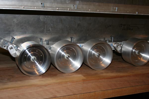 Die Laufrollen noch ohne Nabenabdeckungen..