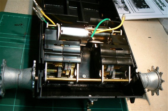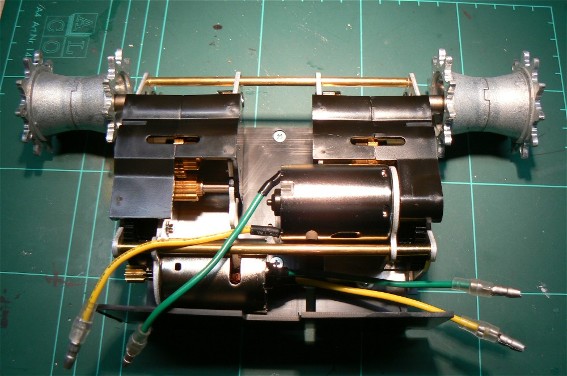 Die beiden Antriebsmotoren liegen einzeln dem Bausatz bei, und müssen zu einer Einheit zusammengefügt werden. Diese werden durch zwei unterschiedlich lange Messinghülsen mit Schrauben zusammengeflanscht.
