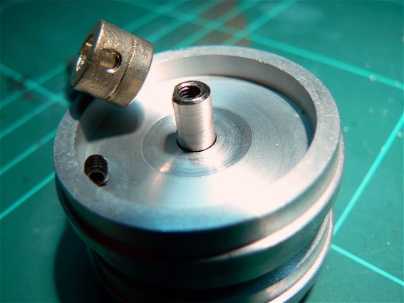 Zwei Laufbuchsen und in der Mitte der Achse einen Zapfen. Die obere Laufbuchse wird mit Sek.Kleber fixiert. Ich hoffe das hält