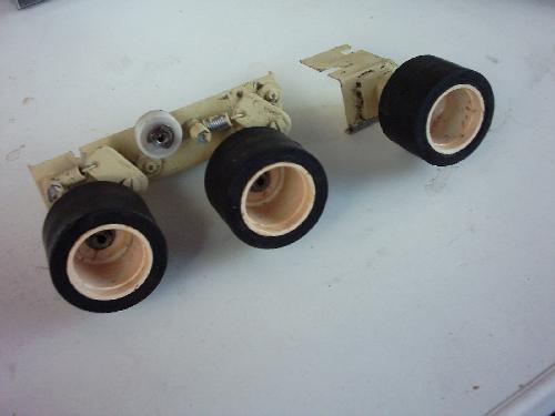 heut gibt´s mal wieder ein paar Bilder. Ich sitzte nun schon seit ner Woche da und versuche die Rollwagen so herzustellen das ich damit zufrieden bin. Aber irgendwie bekomm ich es niocht hin das die Räder rund laufen. Vielleicht kann m,ir einer von Euch da weiterhelfen, oder tips geben ! Aber hier sind nun erstmal meine Bilder. Die Rollwagen sind im Moment ja noch ohne Belastung, deshalb die versetzten Räder.