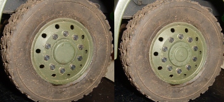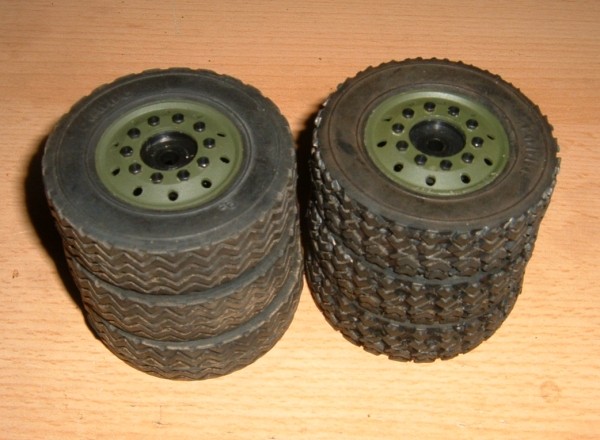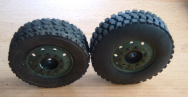 Die Reifen habe ich auch etwas nachbearbeitet.Habe Teile des vorhandene Profils einfach mit dem Cutter-Messer herausgeschnitten.