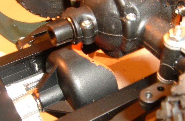 Außerdem berührte ja die V-Achse beim Einfedern das Motor-Getriebe,dewegen habe ich dieses dann etwas nachbearbeitet.