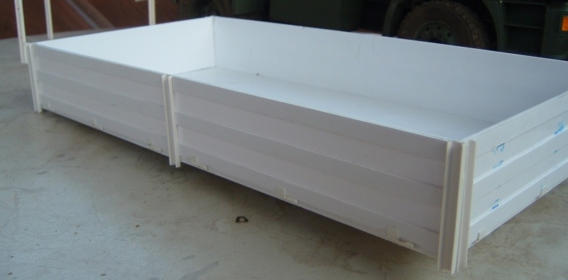 Ich habe nun die Pritsche lackiert und mit einigen Kleinteilen wie Staukästen und Unterfahrschutz ergänzt.