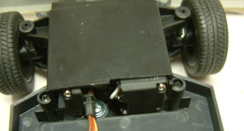 Freudig habe ich festgestellt das die für die Lenkung eingebaute Mechanik die Größe eines Standardservo hat. Also alte Mechanik raus, Standardservo rein.