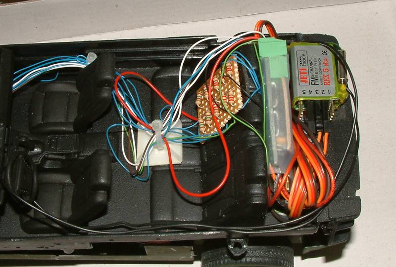 Die Frontscheinwerfer, Rückleuchten und Blinker wurden neu verkabelt, ebenso habe ich für jede LED einen eigenen Vorwiderstand verwendet (200 Ohm gelb/rot LED und 150 Ohm weiße LEDs) .
