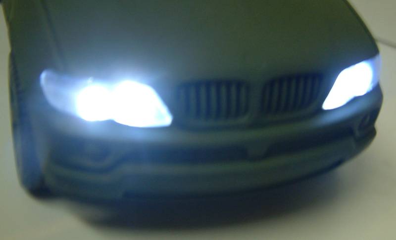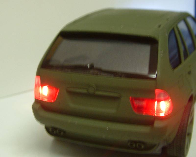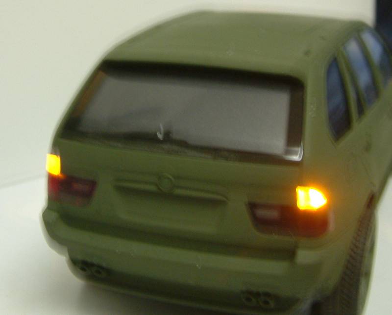Im Original Zustand konnte das Modell fahren , zudem konnte man das Fahrlicht vorne (4 weiße LEDs) ein und ausschalten (Rückleuchten hat er nicht). Beim Lenken haben jeweils die Blinker vorne und hinten geleuchtet (gelbe LEDs). Wenn man vom Gas gegangen ist sind die Bremslichter hinten angegangen.