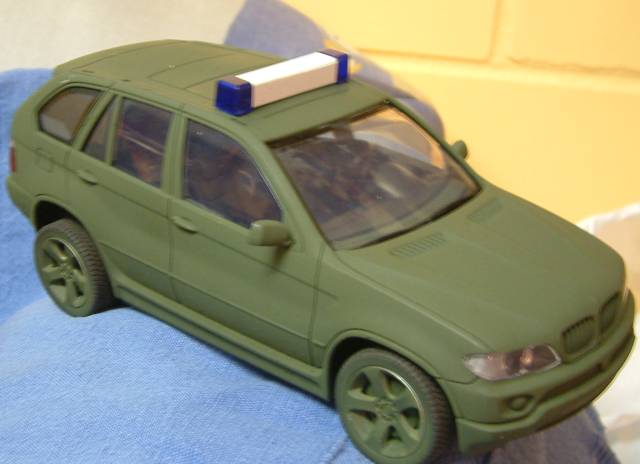 Wenn Du allerdings ein BW Fuhrparkfahrzeug nachbauen möchtest, brauchste den gar nicht Grün lackieren, einfach normale Farbe und dann auf die Tür BW Fuhrparkservice und Y Kennzeichen .