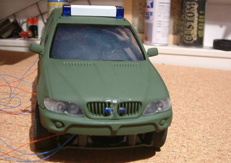 Der X5 hat jetzt funktionierende Frontblitzer und Blaulicht aufm Dach