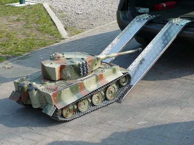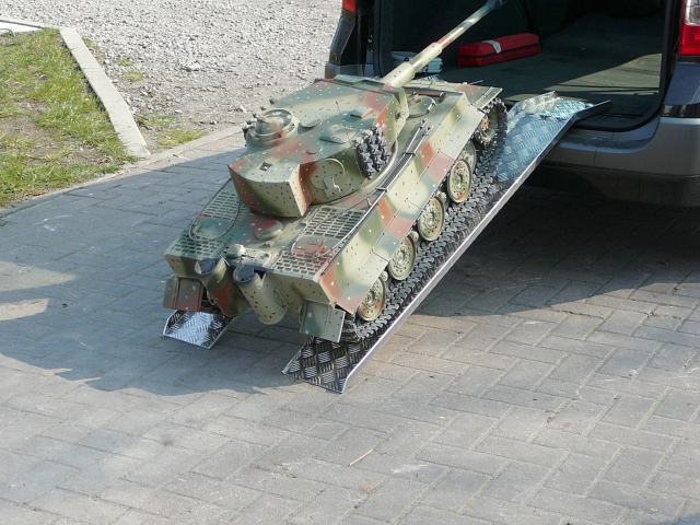 Ich fragte mich schon insgeheim, auf welche Weise diese 80-100 kg schweren Modelle wohl nach Hause gebracht werden und schon wurde meine Frage demonstrativ beantwortet: ein mir unbekannter Tigerbesitzer schickte sich an, mittels zweier Alu-Rampenbleche seinen "schweren Jungen" eigenhändig ins Auto ( Kombi ) zu fahren. Eigentlich eine logische Methode, wenn man mal allein ist, aber ich hatte so etwas vorher noch nie beobachtet. -- Gruß Hartmut