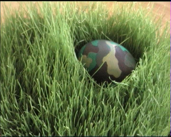 der Hund hat den Rest des Osterhasen gefunden, der wiederum vorher auf dieses Militär-Ei "gestoßen" war, das heimlich von einem Tiger-Panzer versteckt wurde.....