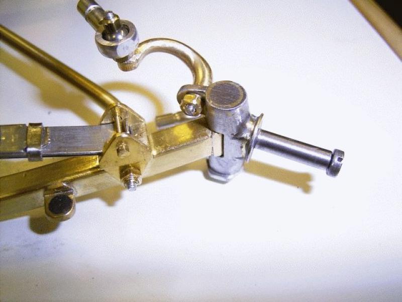 hier noch schnell ein Bild, damit du siehst, dass ich den Lenkhebel sogar bei meiner 1:10 - Halbkette mit Messing gemacht habe. Das Auge für die Stehbolzen-Aufnahme ( für die Gelenkkugel ) ist gleich angeformt, damit ich - wie schon gesagt - keine Schwachstelle durch An-Löten bekomme.