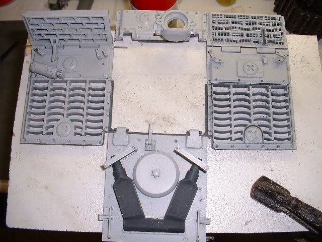 die hinteren Teile , das Rechte Lüftergräting (in Fahrtrichtung) wurde klappbar gemacht , als Wartungsöffnung