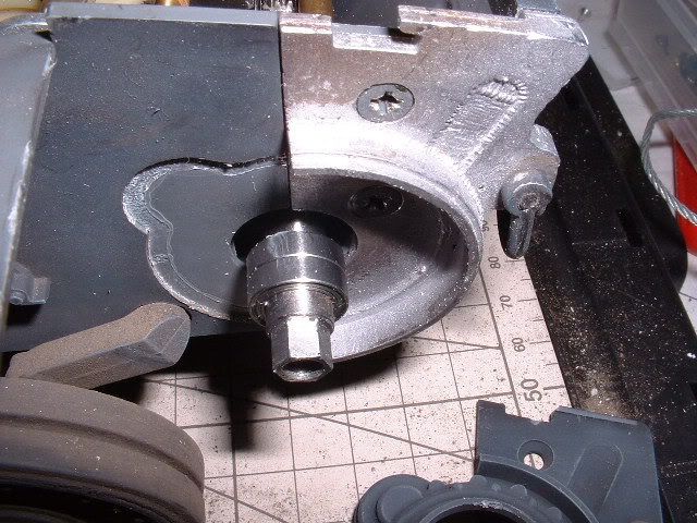 Die Kugellager für die Abstützung und der neue Seitenvorgelegeschutz wurden schon mal probehalber angehalten , als Nächstes muß das Seitenvorgelege ausgegoßen werden und mit der Bohrung für die Aufnahme der zwei Kugellager versehen werden.