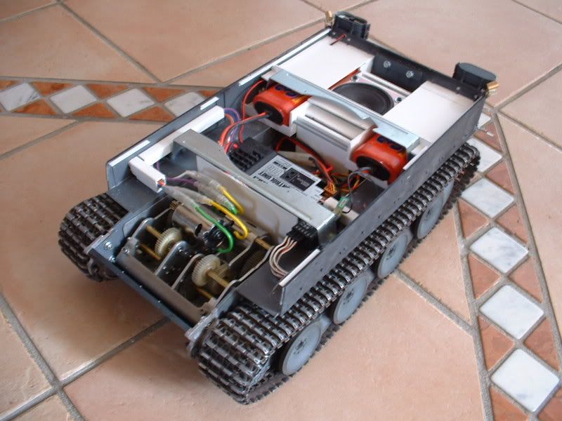 edit: Anm.: das Fahrverhalten ist jetzt ausgewogener , vorn die Getriebe und hinten die schweren Akkus und Lautsprecher , würde ich aber einem normalen Tamiya Tiger1 nicht antun , der hängt dann hinten komplett tiefer , funktioniert nur mit der einstellbaren WECOHE Federung , da ich von jedem Drehstab die Vorspannung einstellen kann !