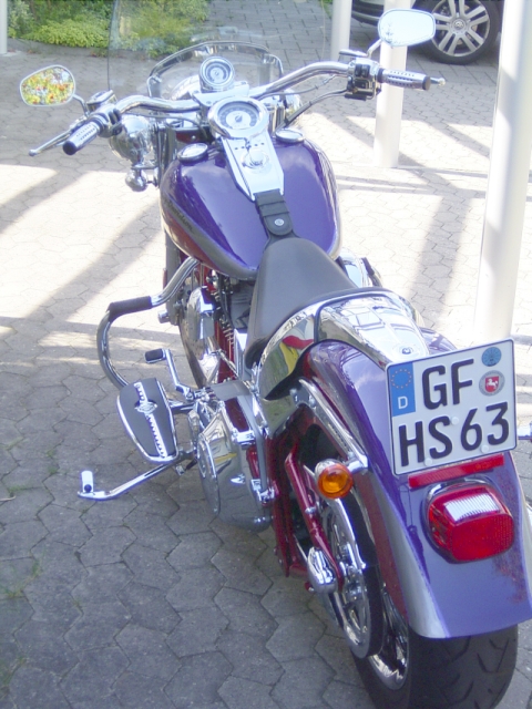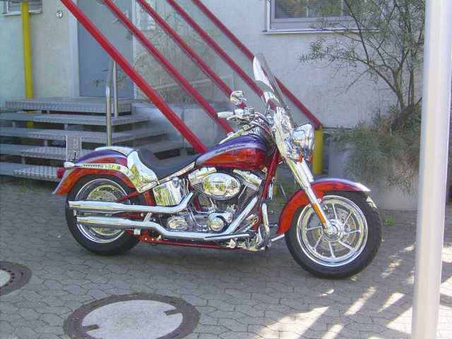 Ja, das ist eine Original-Harley-Davidson, und was für eine: "Fat Boy" Sonder-Edition in geringer Stückzahl mit größerem Motor, 335 kg schwer, Speziallackierung, fast alles verchromt und tiefergelegt, mit breiter Bereifung. Der Preis ist entsprechend doppelt so hoch wie normal - ist meine erste Harley und vielleicht auch meine letzte - da schaut man nicht mehr so auf den Euro.