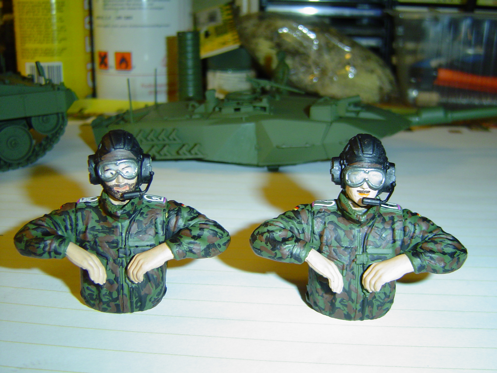 da ich meinen Leo 2 fast fertiggebaut habe. Mache ich mir Gedanken über die Panzerbesatzung. Welche Tamiyafarben nehme ich am besten für die Tarnanzüge?