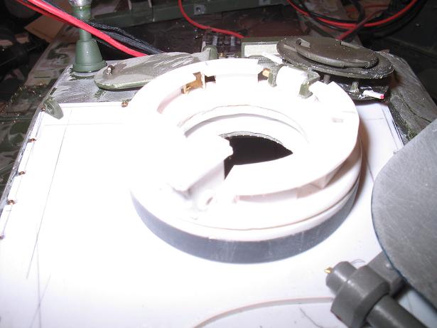 Endlich hab ich die Komm.-kuppel fertig. Fertig- naja, aufgehört. Da könnte man allein Wochen dran sitzen. Mit der Halterung für den Aufsatz des von innen gerichteten MG's. Irgendwann stell aber auch ich mir die Frage, was sieht man hinterher davon noch?