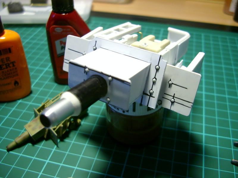 Die Nietendarstellung folgte durch 1,6mm starke Nietenköpfe aus Polystyrol die ich aus meinem 1/35ern Beständen Zweckenfremden mußte ...