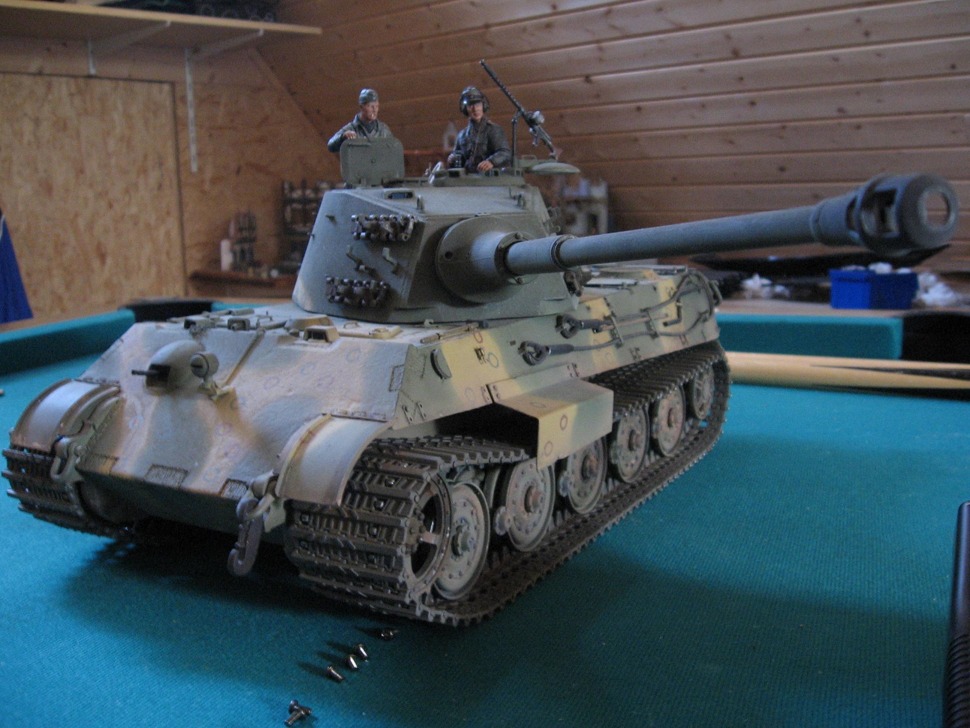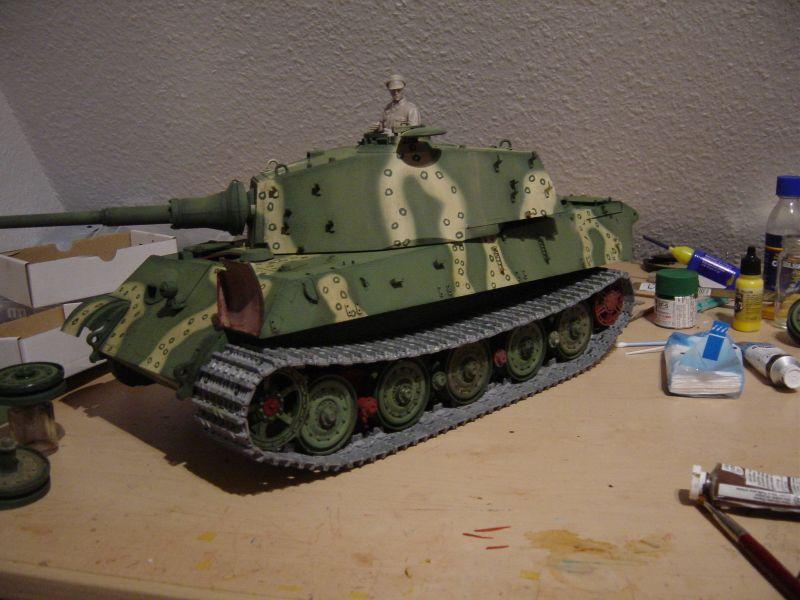 Aber Raimunds 100er hat schon etwas ganz besonderes. Bezüglich des Tarnschema sind ja schon zig Diskussionen geführt worden. Ich habe auch schon ein 1:35er Modell in der gleichen Farbgebung wie sie Raimund hier ausgeführt hat, gesehen. Angeblich hatten die KT's der 503, die im Januar ausgeliefert wurden (dazu soll der 100er gehören) allesamt scharfkantiges 3 Farbtarnmuster. Bei dem 314 ist das wohl eher zu erkennen. Sicher ist allerdings nur das der von der sSS Pz.Abt. 503 stammt und entweder unter Uscha Diers oder Turks Kommando am Potsdamer Platz dann endgültig liegen blieb.