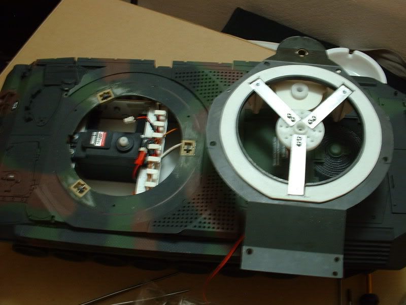Da ja die Oberwanne jetzt nicht mehr durch die Auflage des Turms miteinander verbunden ist ( der Abstand je nach Auflage verändert ist ) und der Turm nur auf dem Servo ausgerichtet ist , denke mal Beides genau parallel auszurichten ist mit Aufwand verbunden.
