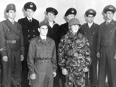 Die Uniform wurde in dem 1956 typischen Splittertarnmuster gestaltet.