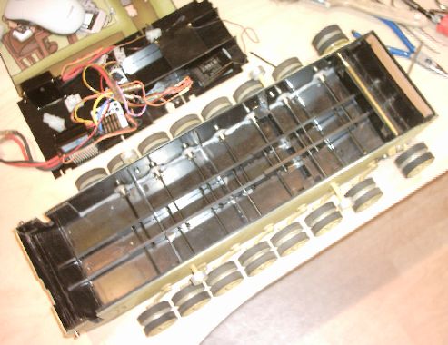 Nachdem nun die Funktion wieder hergestellt war, was eine kurze Probefahrt mit den gekürzten Ketten ergab, ging es nun an die Kür. Ich hatte 2006 zunächst nur die originalen "Spielzeugfunktionen" angeschlossen. Klappte auch alles wunderbar. Aber einige Schwachpunkte hat das doch.