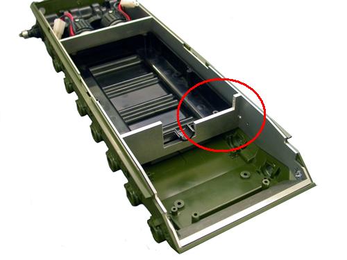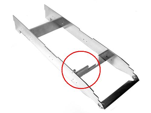 Der Auslass für das Kabel (Frontbeleuchtung) ist mittig. Dafür ist der tiefe Ausschnitt. Ich konnte in der Anleitung keinen Grund für die zweite "Stufe" der Vertiefung in der Traverse finden.
