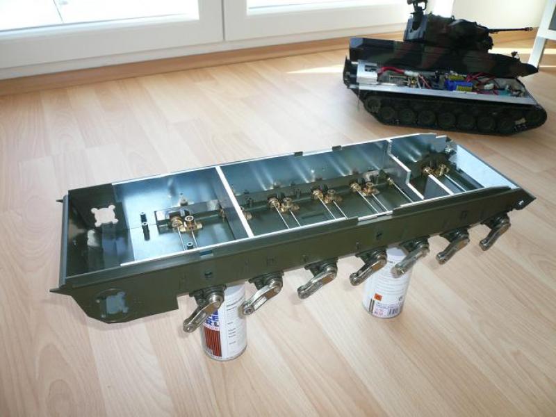 Denke, dass bis heute abend die Wann soweit fertig ist. Will die Lauf- und Leiträder separat lackieren. Die Wanne aber so, wie sie auf dem Bild zu sehen ist. Bis heute abend sind auch die Dämpfer und alle Anbauteile am Heck dran. Die Hoffnung ist noch net aufgegeben. -- Gruß. Der Mirco