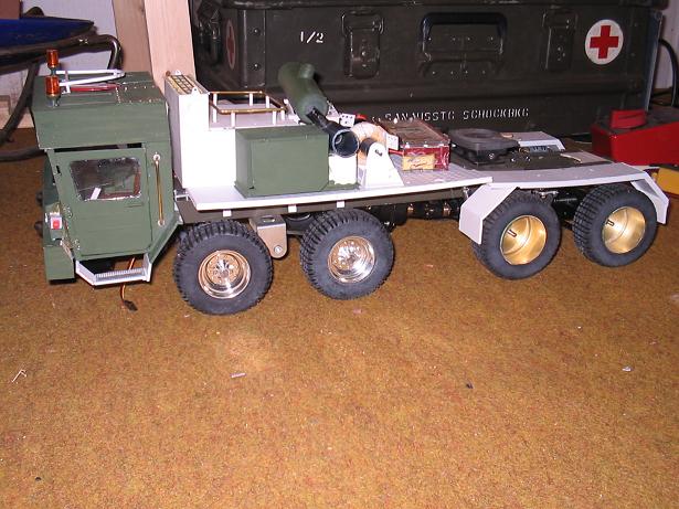 Daran hab ich mich auch mal versucht. Liegt unfertig bei mir rum. Basis war ein Trumpeter 1:35 Bausatz. Das Hauptproblem ist die Lenkung der 2 Vorderachsen mit Federung! Wie willst du das hinbekommen, dagegen ist das Fahrerhaus trivial....