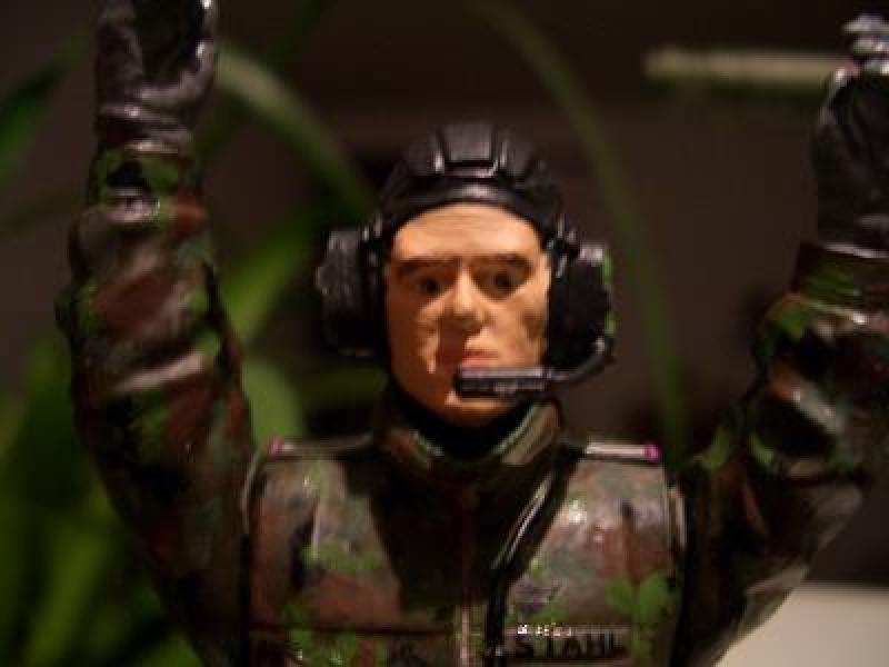 da muss ich was zu meiner verteidigung sagen ! de glonde hat blaue augen und ne schwarze popille. das kann man auf den bildern nich so sehn. aber für meine ersten figuren find ich sie garnicht so schlech. die beiden werden die besatzung meines leo 2a5 von graupner der leo is in der gallerie zu finden. er soll aber noch umgebaut werden andere wanne und rollen+ketten. -- das grüne muß nach oben!!!