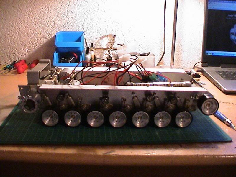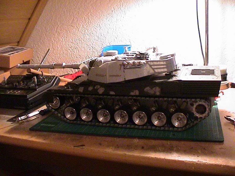 Mttlerweile habe ich aber alles wieder rausgerissen da das so mit dem Leo 2 Turmdrehkarnz nicht funktioniert,den der schaut ca 2 cm in die Wanne und da ist ja eh schon nicht viel Platz habe mir das was anderes fürs Turmdrehen einfallen lassen kommt die Tage.