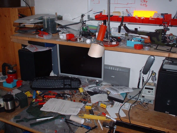 Ich bin ja ganz froh, daß die Mehrzahl der Bastler bisher eher ähnlich meiner Vogehensweise arbeitet. Ich dachte schon ich wäre die unrühmliche Ausnahme. Ich kenne auch zumindest einen Bastler, der supersystematisch und ordentlich vor geht.