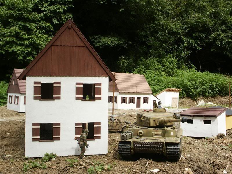 Wir haben jetzt über die Winterzeit jeden Monat einen Basteltag eingelegt und somit ist unser Häuserbestand gestiegen .Wir können nun mit 12 kompletten Bauernhäusern , 4 Barracken ,1 Kapelle ,1 Feuerwehrgerätehaus ,1 Bunker ( 65 x 55 cm x 35 cm ) , etlichen Kleindioramen , 1 Panzerfähre , 3 Brücken , 1 Pontonbrücke ,1 Bordell .1 Pferdestall ,und etlichen Kleinstgebäuden das Gelände ausstatten .