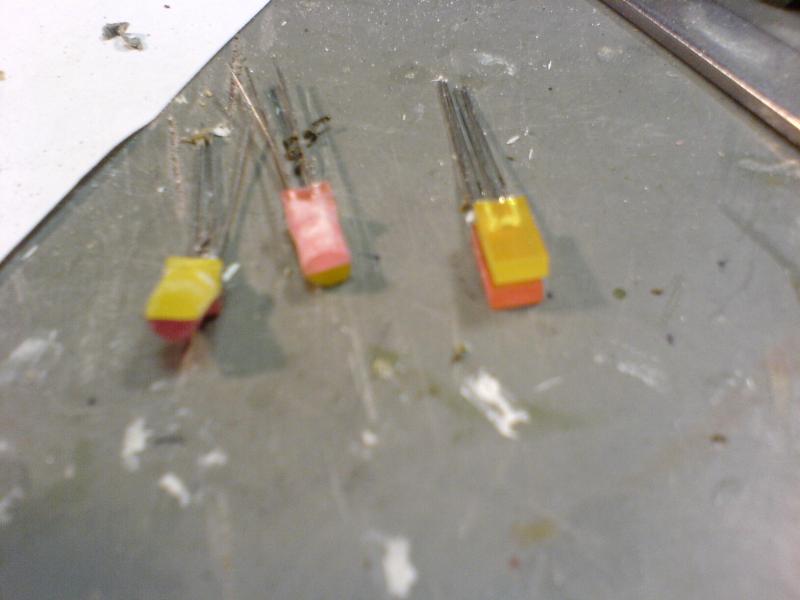 also ich habe mir letztens Rücklichter selber gebaut, wenn man die normalen gelben LED's mit einem roten Edding anmalt und die Farbe dann leicht anschleift, dann sehen die wesentlich oranger aus,...