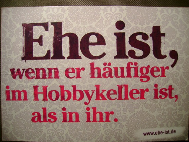 Es heisst: "Ehe ist´, wenn er häufiger im Hobbykeller isst, als mit ihr." Und wer tut sowas schon